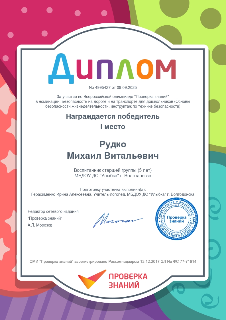 Всероссийская олимпиада «Безопасность на дороге и на транспорте для дошкольников»