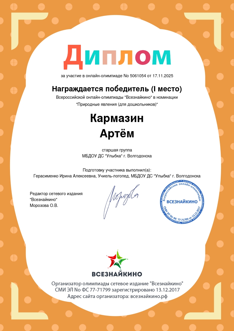 Международная онлайн-олимпиада для дошкольников «Чудеса науки»,