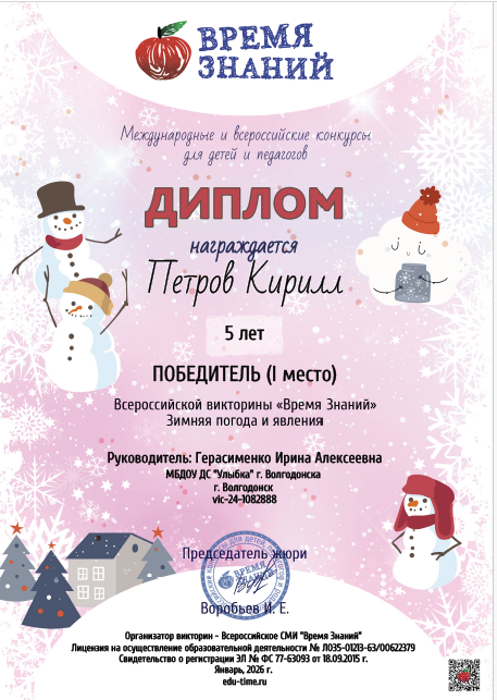 Всероссийская викторина для дошкольников «Зимушка-зима»
